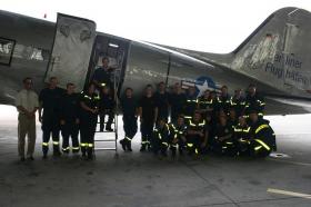 Nach ein paar spektakulären Kurven am Himmel und staunend über die vielen Eindrücke landeten wir wieder unbeschadet auf dem Tempelhofer Rollfeld. Nachdem die urigen und laut donnernden Rotoren der Maschine standen, stiegen wir aus zum Gruppenbild und traten den Heimweg an.