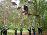 Während die "Großen" zur Einsatzübung nach Kleinmachnow fuhren, machten sich die Junghelfer des OV auf den Weg nach Strausberg, um dort im "Climb up!"-Kletterwald eine Teamübung zu absolvieren. Das Wetter war gnädig, und so konnten unter Leitung der Erlebnispädagogen Ingo Wolf und Georg Quandt verschiedene Teamübungen erfolgreich absolviert werden. Ziel war es, das Vertrauen innerhalb der Gruppe zu stärken und gemeinsam die gestellten Aufgaben zu lösen.