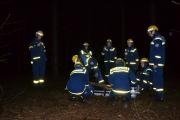 Die Ausbildungsthemen wurden nicht ohne Grund so gewählt, denn in der folgenden Nacht wurden die Junghelfer mit einer Einsatzübung in einem Waldgebiet überrascht, bei der es darum ging, ein auszuleuchtendes Waldstück gemeinsam nach einer verletzten Person abzusuchen und diese vom Unfallort zur Verletztenversorgungsstelle zu transportieren. Die Jugendsprecher beider Jugendgruppen hatten als Gruppenführer die Aufgabe, die Gruppen einzuteilen, den Trupps verschiedene Aufgaben zuzuweisen und das Geschehen im Auge zu behalten. Die Junghelfer erfüllten den Einsatzauftrag mit Begeisterung und großer Ernsthaftigkeit, bekommen sie in einer solchen Übung doch ein Gefühl dafür, wie später Einsätze tatsächlich ablaufen könnten und warum die Ausbildung dafür so wichtig ist.
