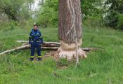Nach der kurzen Nacht waren wir dann wieder auf der Oder unterwegs und suchten uns einen circa 10 Meter langen Baumstamm, den wir mit dem MzAB durch das Wasser ziehen konnten. Bei Hochwasserlagen verfängt sich auf Grund der reißenden Gewässer allerhand Treibgut und verhindert das Abfliessen des angestauten Wassers. Vornehmlich an Brücken und anderen Engstellen bleiben des Öfteren entwurzelte Bäume liegen. Es zählt dann zu unseren Herausforderungen, dies zu beräumen und den Abtransport zu bewerkstelligen. Ein paar Flussmeter weiter fanden wir dann auch einen geeigneten Ort, um das Treibgut wieder an Land zu ziehen. Danach erkundeten wir das Ufer nach einer geeigneten Sandsackfüllstation. Als wir fündig wurden, begannen wir Sandsäcke zu befüllen und diese auf einer Palette in das MzB zu laden. Währenddessen war das MzAB unterwegs, um eine geeignete Deichstelle zu finden, bei der man Deichverteidigungsmaßnahmen üben konnte. Als das MzB die Sandsäcke zum Treffpunkt transportiert hatte, sicherten wir eine Quellkade. Alle dises Schritte müssen hand in hand funktionieren, da im Einsatzfall beim Hochwasser diese Aufgaben zügig und dennoch professionell und sicher ablaufen müssen. Danach luden wir die befüllten Sandsäcke auf das MzAB, sicherten die Ladung, fuhren zurück zur Sandsackfüllstation und schütteten den Sand wieder zurück.