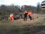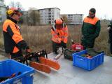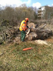 Bei bestem Wetter konnten wir uns morgens zunächst mit den Unfallverhütungsvorschriften beim Bedienen von Kettensägen vertraut machen. Nach dem Anlegen der Schnittschutzkleidung und einer Einweisung an den Kettensägen konnte es dann endlich losgehen.