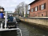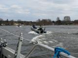 Eine besondere Herausforderung an diesem Tag war die extreme Witterung mit Teperaturen unter dem Gefrierpunkt und starkem Wind mit stürmischen Böen. Mit der entsprechenden Bekleidung und heißen Getränken konnte die Ausbildung u.a. von Schleusen- und Anlegemanövern denoch durchgeführt werden. Auch für die erfahrenen Teilnehmer waren diese Ausbildungseinheiten bei Frost und Sturm eine Herausforderung.