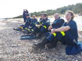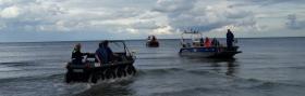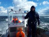 Die Fachgruppen Wassergefahren aus den THW Ortsverbänden Wolgast und Friedrichshain-Kreuzberg verlegten mit ihren Booten zum Hafen Saßnitz, wodurch die Kraftfahrer Fahrpraxis beim Rangieren des Gespanns Ladekran mit Mehrzweckarbeitsboot (MzAB) auf Bootsanhänger gewinnen konnten. Während die Boote mit einem Ladekran zu Wasser gelassen und mit Ölwehrgerät, wie dem Ankergerät, beladen wurden, bereitete die Fachgruppe Öl aus den Ortsverbänden Stralsund und Berlin Lichtenberg am Strand von Prora die Ölsperre vor. Diese wurde dann nach Ankunft der Fachgruppe Wassergefahren auf das Wasser hinausgezogen und auf dem Grund verankert, um die Verbreitung des Öls einzudämmen. Fiktiv wurde dann das Öl durch das Havariekommando OV Stralsund von der Wasseroberfläche abgesaugt (Skimmern). Neu für die HelferInnen unserer Fachgruppe Wassergefahren war das Auslegen der Ölsperren, das Anlegen der Boote am Stand, sowie der Transport von Lasten im Küstenbereich. Zudem konnten Einblicke in die Technik und Fähigkeiten der Fachgruppe Öl gewonnen werden.
