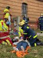 Die letzten Helfer waren noch beim Essen und schon kam der nächste Alarm für alle Einheiten. Es hieß „Einsatzbereitschaft wieder herstellen und an den Fahrzeugen sammeln“. Aufgaben für die Kombistationen zwei und drei waren: „Rettung aus der Tiefe und Arbeitsunfall auf einem Schwerlastregal“. Die besondere Schwierigkeit für die Schwere Bergungsgruppe ergab sich in der Teilung der Gruppe. Ein Trupp bewältigte das Szenario „ Grubenunglück“ mit Abstützung und Aussteifen und der andere Trupp musste die Rettung des Arbeiters auf dem Schwerlastregal mittels einer sogenannten Schiefe Ebene durchführen. Bei beiden Aufgaben gab es wieder verletzte Personen, welche durch die Rettungshundestaffel und der Spree Ambulance gefunden sowie versorgt werden musste. Bei Einsätzen jeglicher Art mit Beteiligung von verletzten Personen kann es immer mal wieder passieren, dass aufgrund der Zeit bis zum Vordringen zum Patienten, sich der Mensch in einem kritischen Zustand bis hin zur Wiederbelebung befinden könnte . Das mussten auch die Helfer der Fachgruppe Schwere Bergung an diesem Tag erleben. An zwei von drei Stationen führten sie eine Reanimation( Wiederbelegung) gemeinsam mit der Spree Ambulance durch.