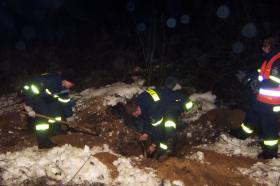 Da wir mit den vorhandenen Mitteln nicht die genaue Lage feststellen konnten, wurden die technischen Ortungsgeräte unseres Ortsverbandes nachalarmiert. Bis zum Eintreffen der Geräte gruben wir uns schon in die Richtung des Bellens. Mit der eingetroffenen Technik konnten wir dann die genaue Lage bestimmen. Unter Zuhilfenahme der SearchCam (ein „langer Stock mit schwenkbarerer Kamera“) konnten wir erkennen, dass Max nicht etwa eingeklemmt war, sondern dass er einfach nicht wieder heraus wollte, da Herr Fuchs auch noch zu Hause war. Durch einen beherzten Griff unseres Kameraden Klaus Kroll wurde Max dann aber wieder herausgeholt.