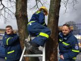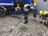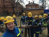 Anschließend ging es über zum praktischen Teil auf dem Hof. Auf dem Tagesplan stand das Thema Leitern. Nicht nur das Aufstellen und der Transport wurde geübt, sondern auch das Sichern durch eine Kopf- und Fußpunktsicherung. Jeder konnte seine Höhentauglichkeit testen und die frische Luft genießen. In einer Teamarbeit sollten die Junghelferinnen und Junghelfer bei dem Transport einer Steckleiter unter Hindernissen getestet werden. Nach erfolgreichen Rückbau ging es zurück zur Unterkunft. Oben angekommen wurden Erste Hilfe Maßnahmen und das Absetzen eines Notrufes geprobt. Nach einem erfolgreichen und aufregenden Dienst ging es dann verdient in den Feierabend.